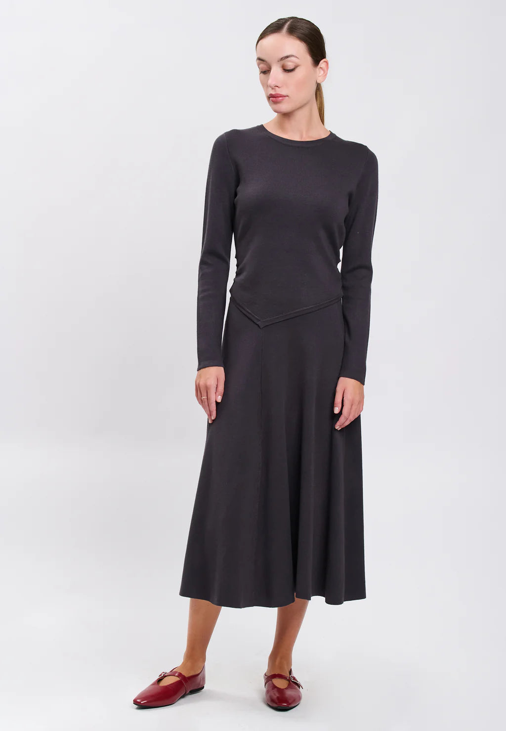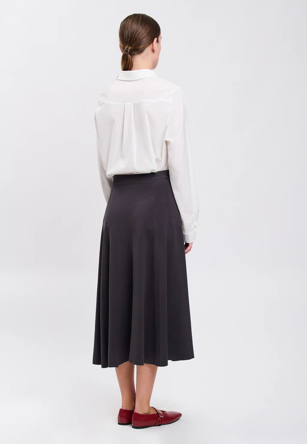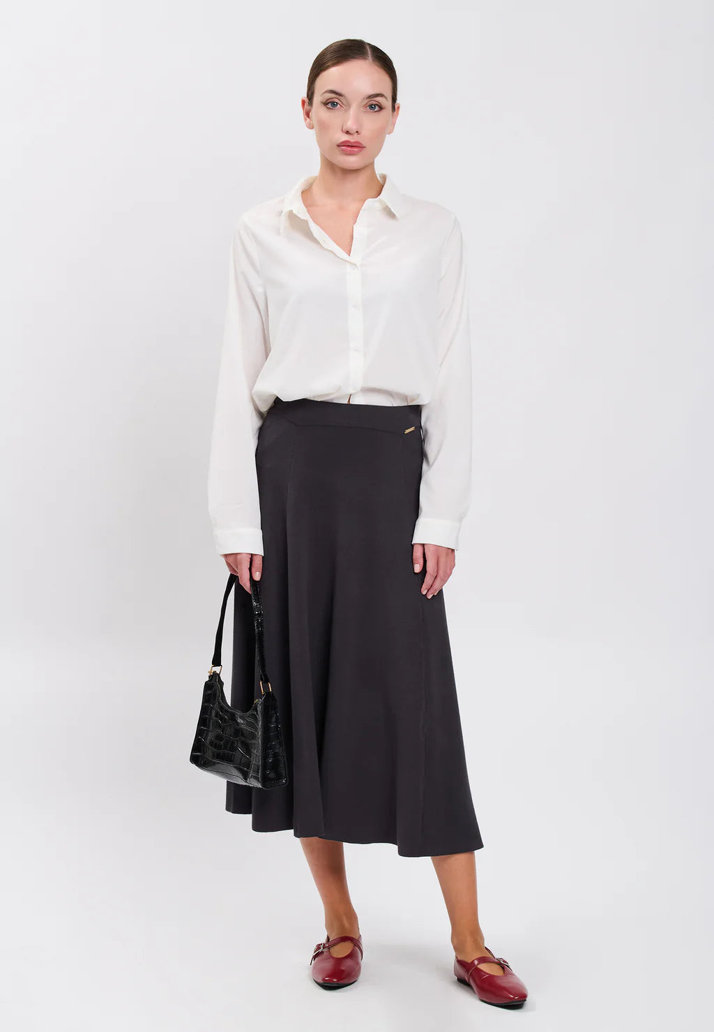 Pensata come un capo d'impatto e comodo, questa gonna midi si distingue per la sua maglia strutturata. La vita elastica e il taglio svasato donano fluidità e femminilità. Indossala con un camicia e ballerine per un look d'ufficio impeccabile, oppure proponila sotto la maglia in coordinato per un total look comodo e femminile.