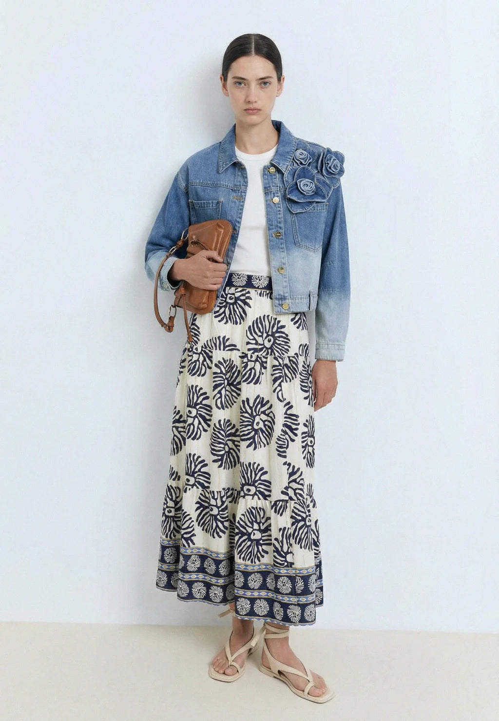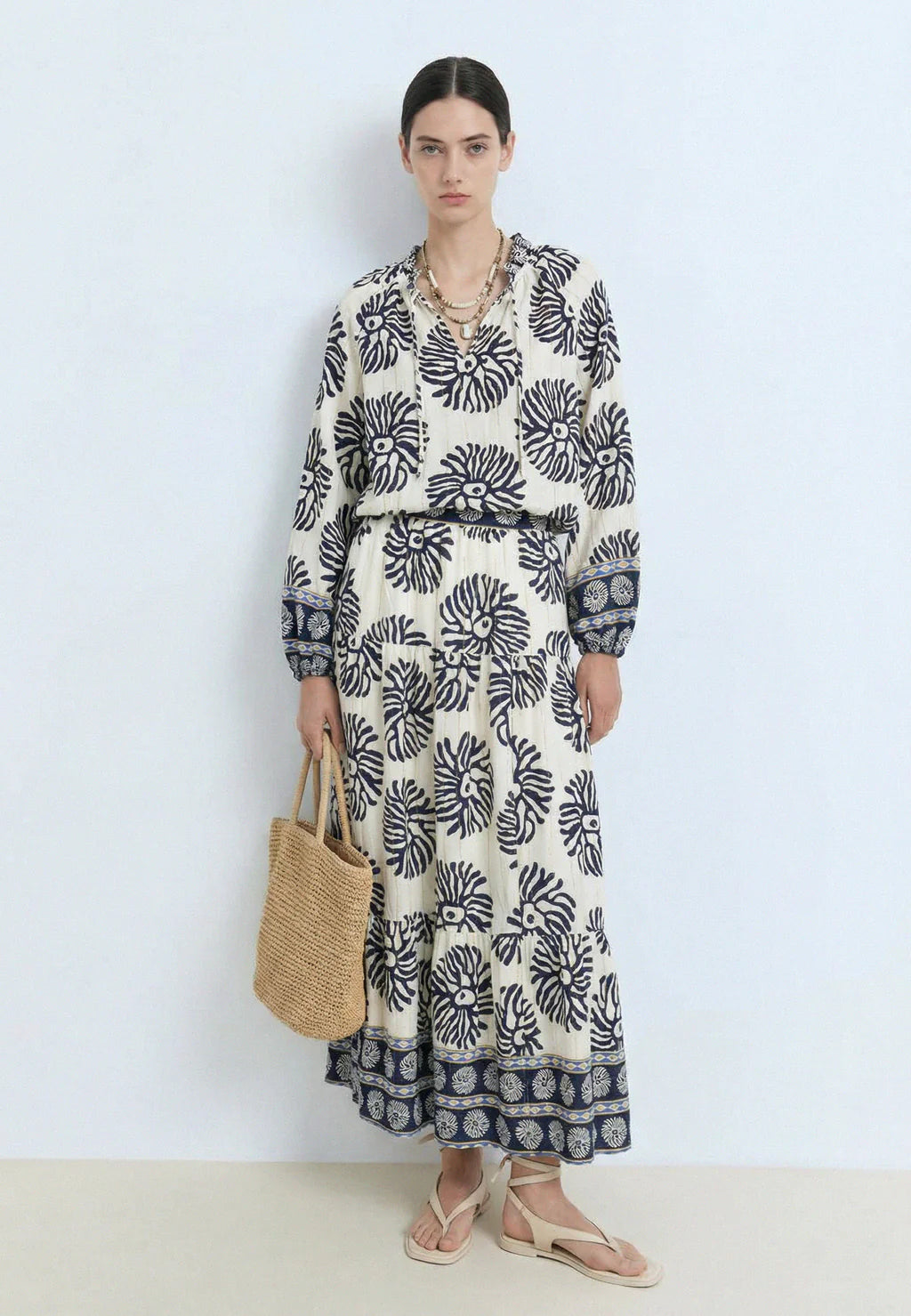 Con i suoi fiori grafici e il suo volume ampio, questa blusa evoca la forza creativa di donne pronte a esplorare nuovi orizzonti.