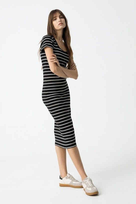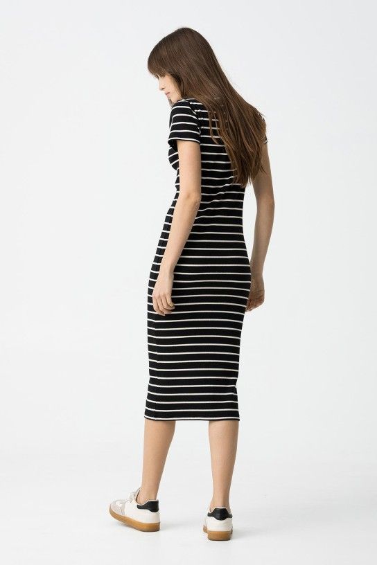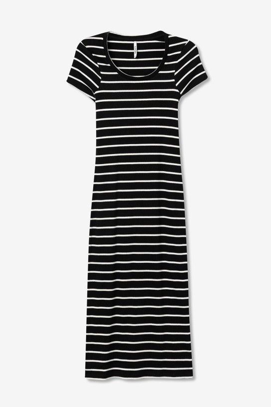 Il Bailey è un abito lungo con rifiniture a costine e righe, adatto per essere indossato in occasioni formali o informali. La mezza manica e il girocollo rendono questo abito versatile e comodo da indossare. Aggiungi un tocco di eleganza al tuo guardaroba con l'abitoin Bailey.