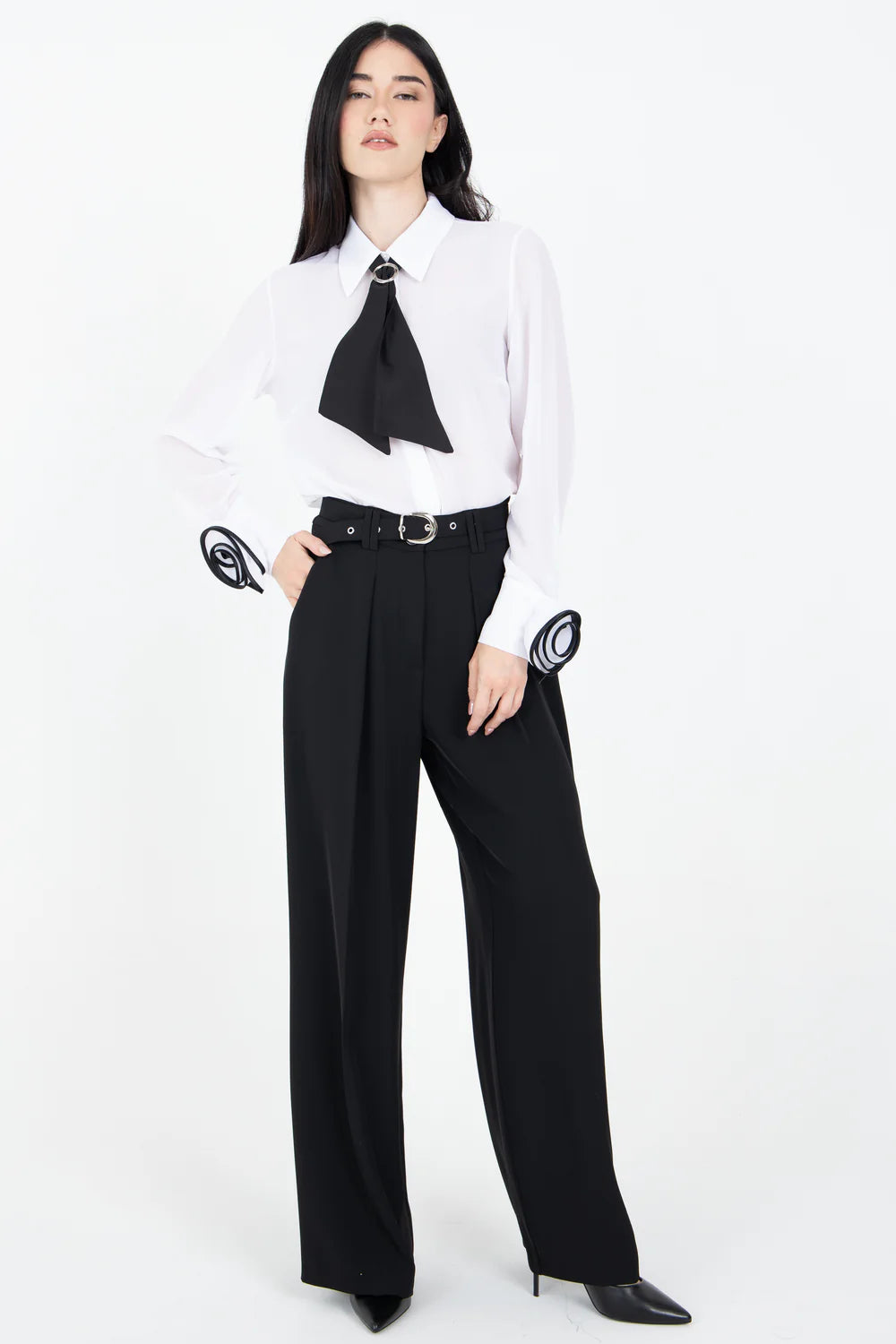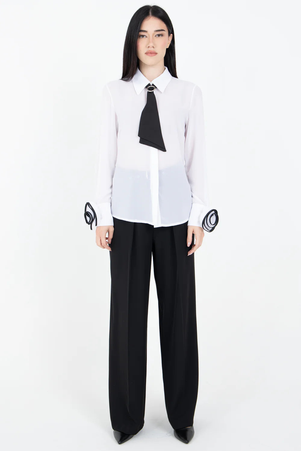 Valorizza il tuo look con questa elegante camicia con cravatta e fiore in tessuto polso! Il tocco finale perfetto per ogni outfit, la cravatta e il fiore aggiungono un tocco di femminilità e stile mentre il tessuto polso garantisce comfort e praticità. Fai risaltare la tua personalità con questo set unico ed esclusivo!