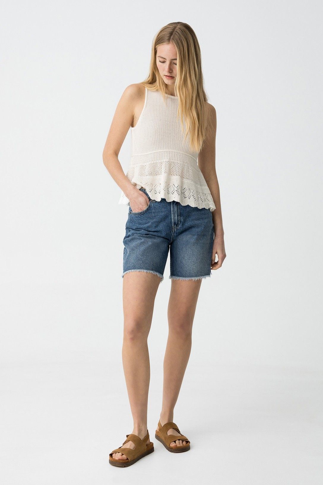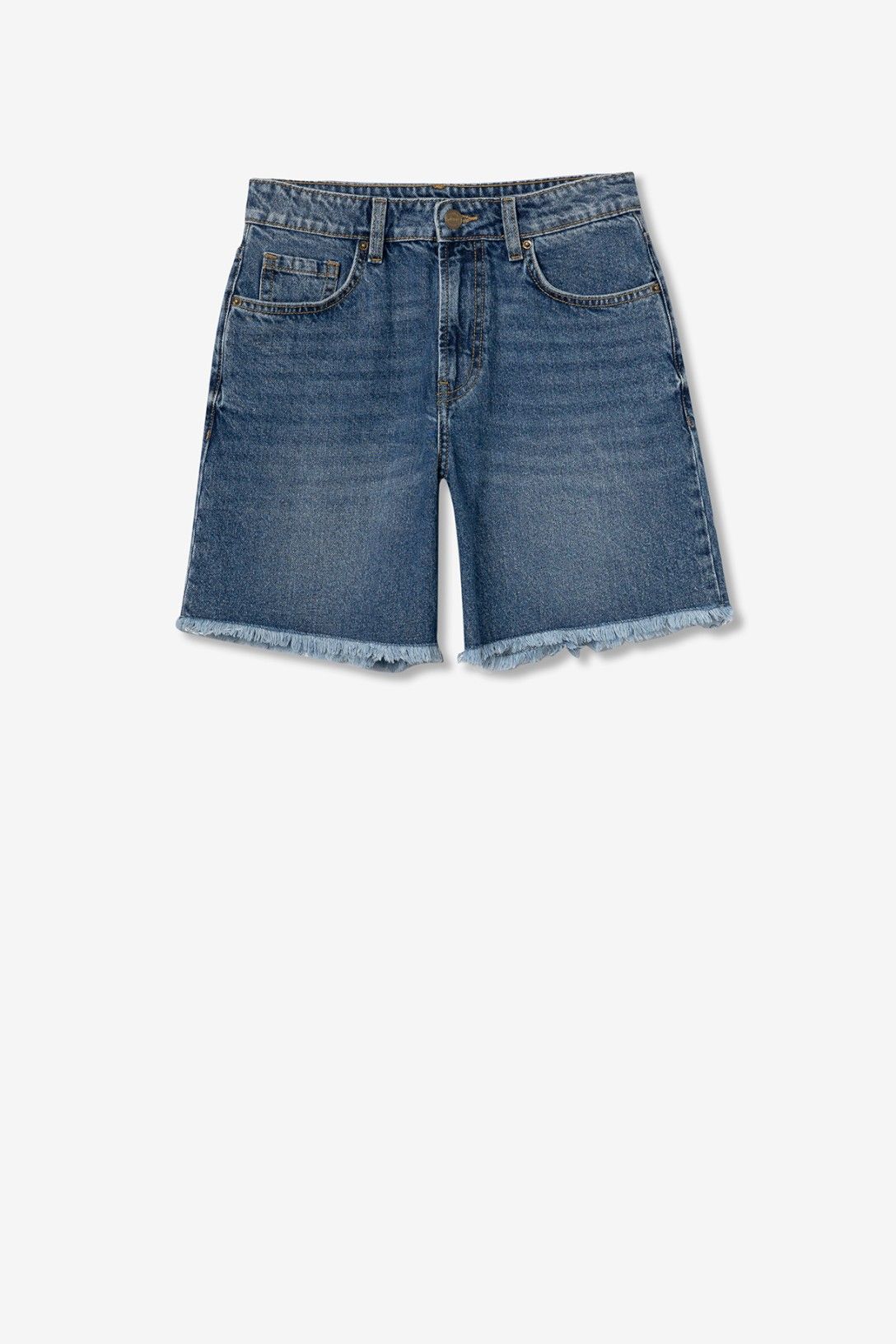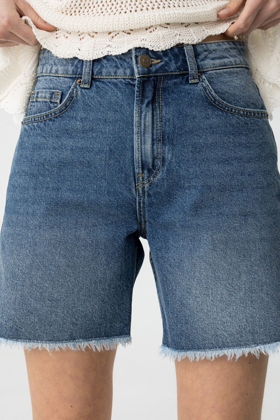 SHORT IN DENIM CON SFRANGIATURE AL FONDO