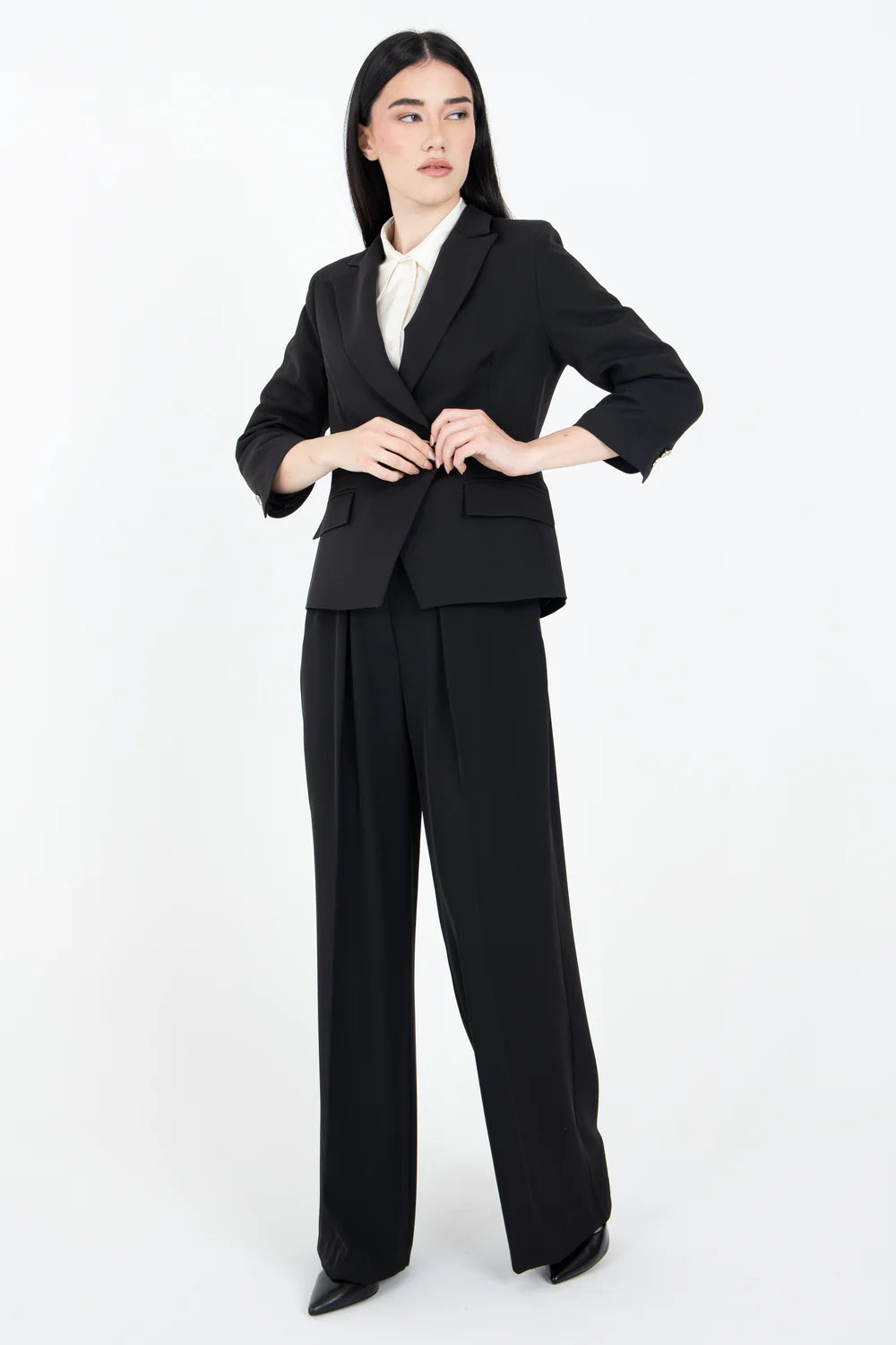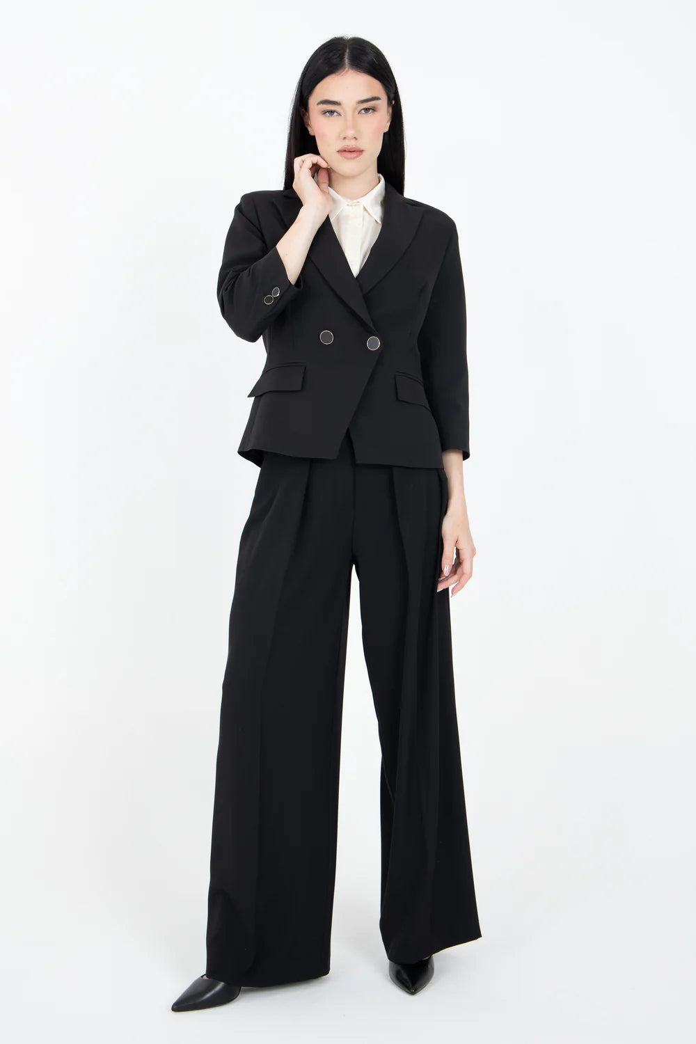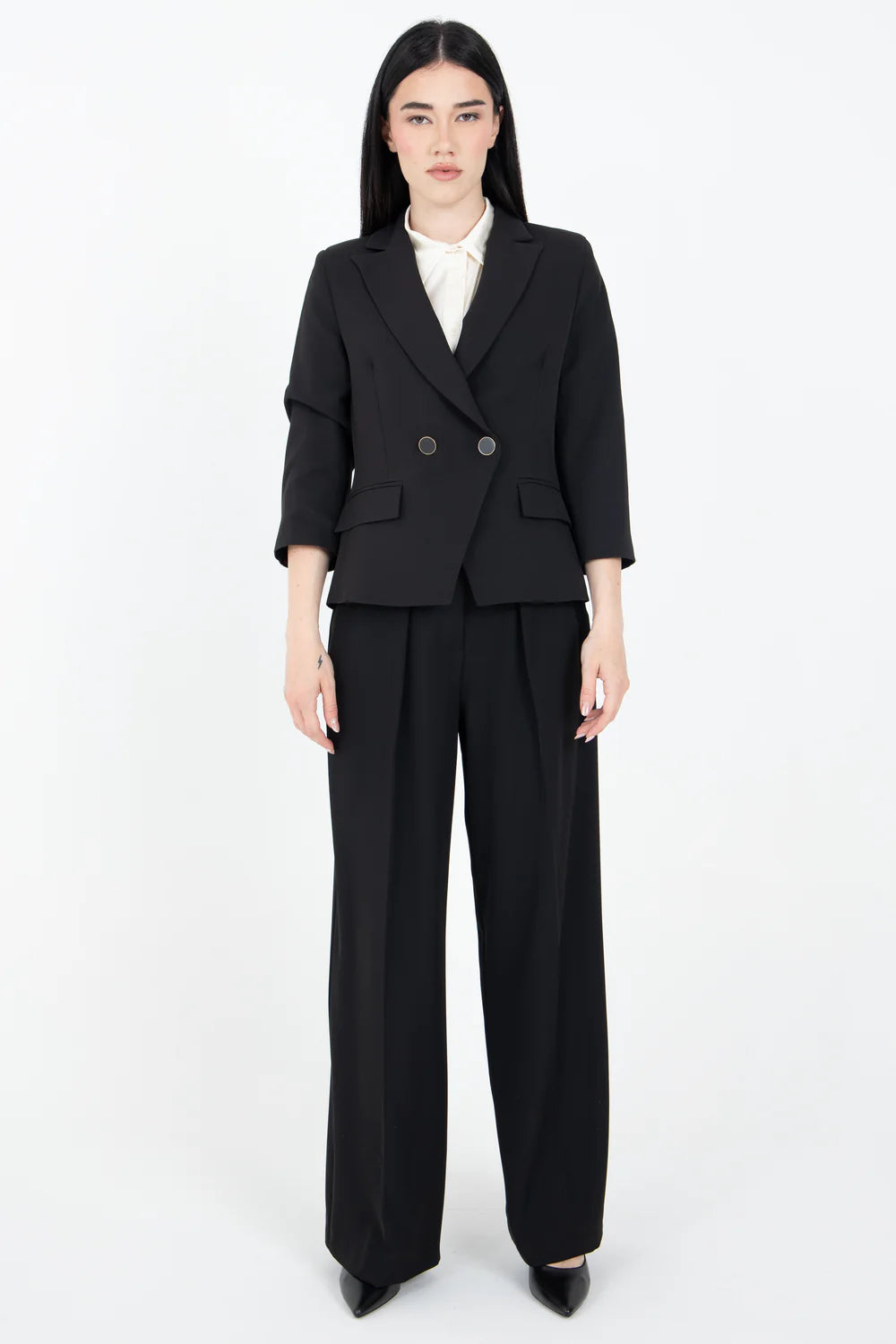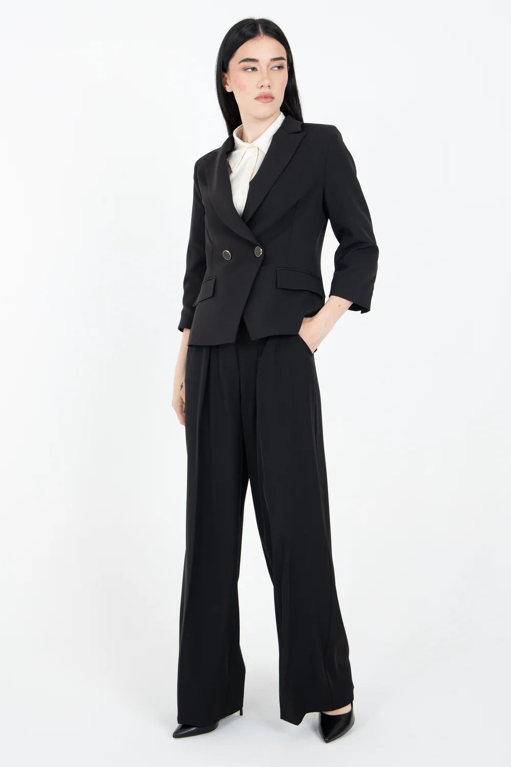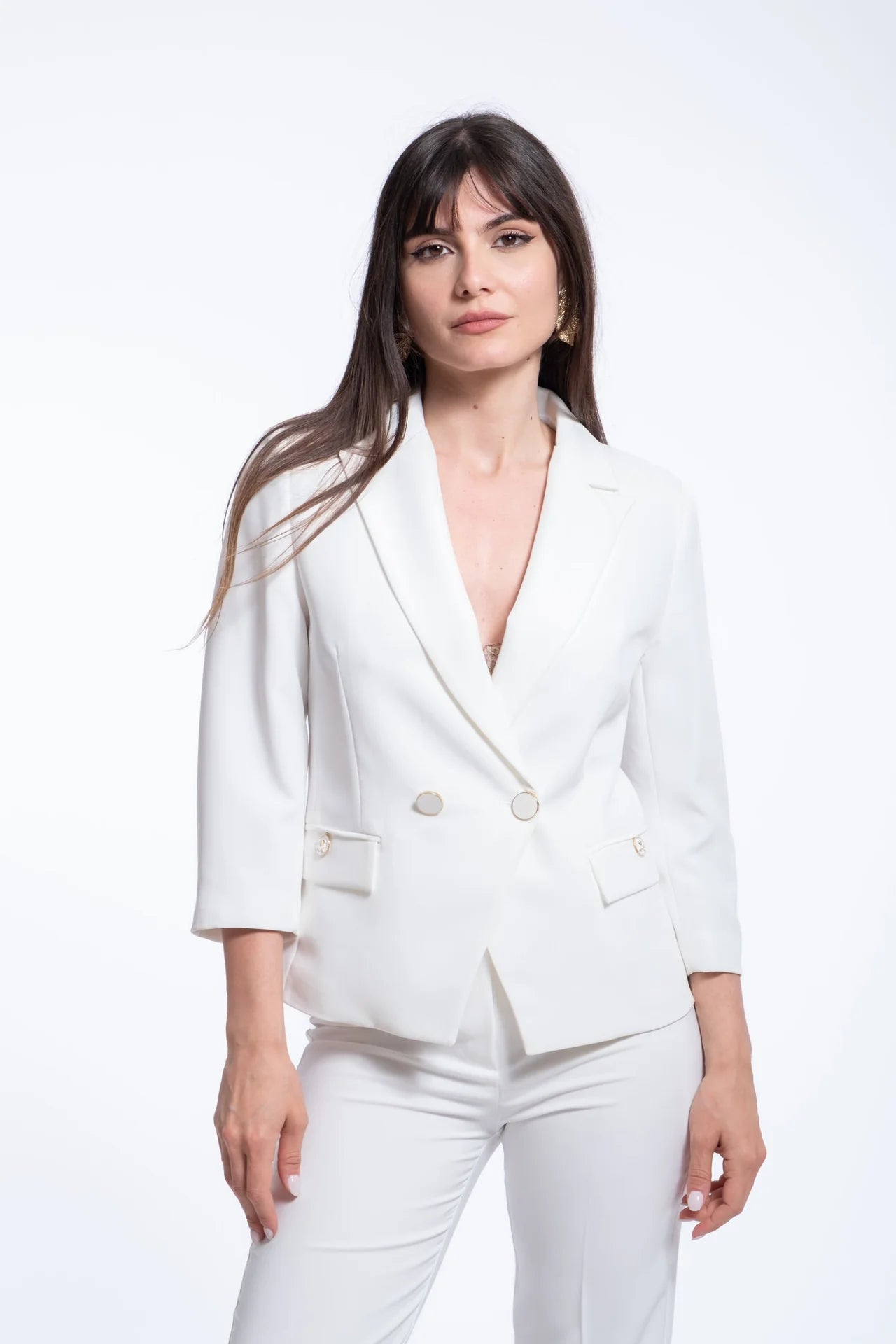 Aggiungi un tocco glamour al tuo look con questa giacca crop firmata PINK MOOD MILANO. Realizzata in morbida viscosa e poliestere, ha un taglio a scatoletta e bottoni gold che la rendono elegante e alla moda. Le spalline interne e i revers classici la rendono perfetta per ogni occasione. Vestibilità regolare, maniche lunghe.