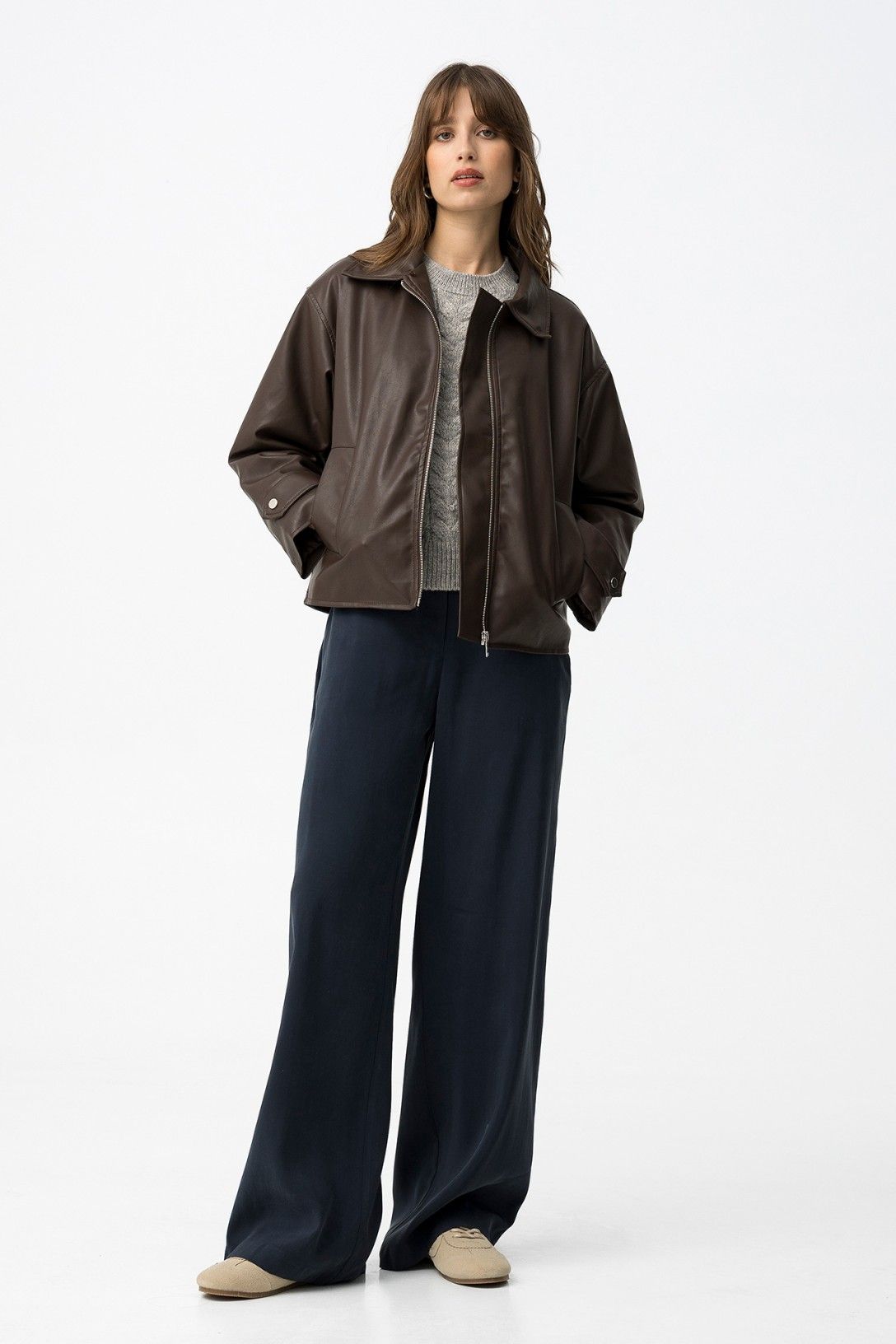 Completo coordinato con cardigan e top a righe che gioca con i contrasti e le proporzioni. Perfetto per chi ama mixare i pezzi e creare combinazioni sempre diverse. Un duo versatile che trasforma il tuo stile quotidiano in qualcosa di più interessante e consapevole.