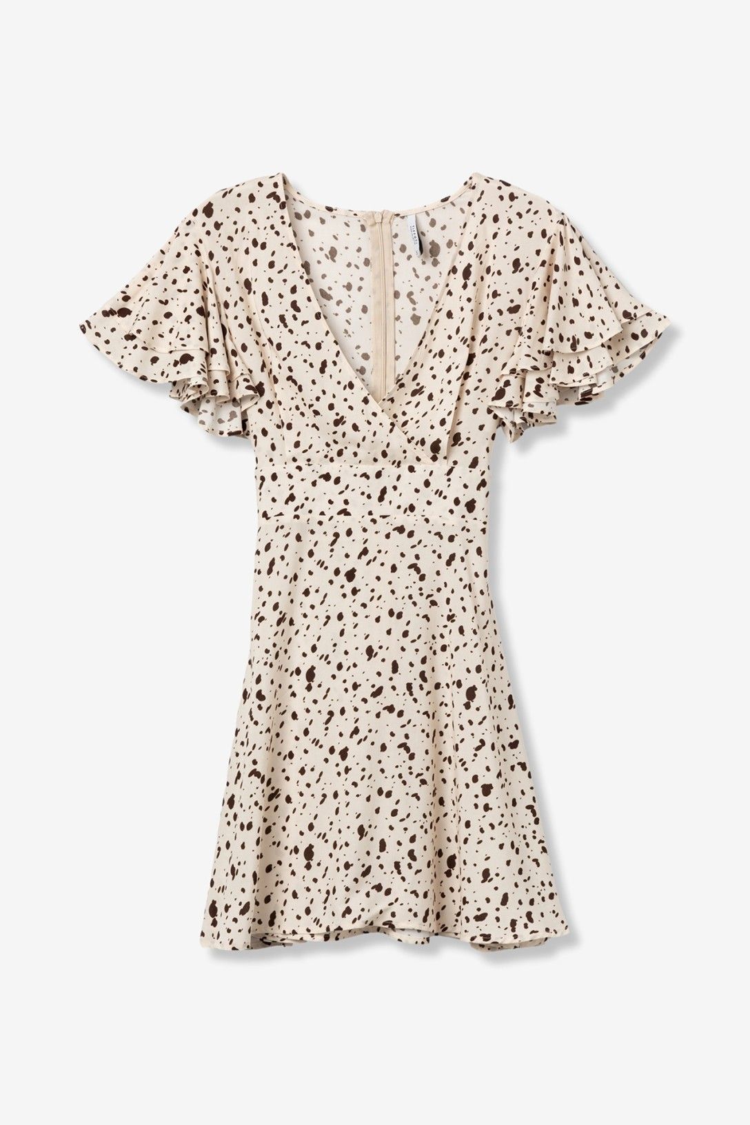 Twirl-worthy and oh-so-fun, the Clarice dress is your ticket to effortless elegance. This printed beauty features voluminous short sleeves and a flattering V-neckline that frames you perfectly, while the flared silhouette adds movement and flair to every step. Dress it up or keep it casual—either way, you'll feel fabulous.