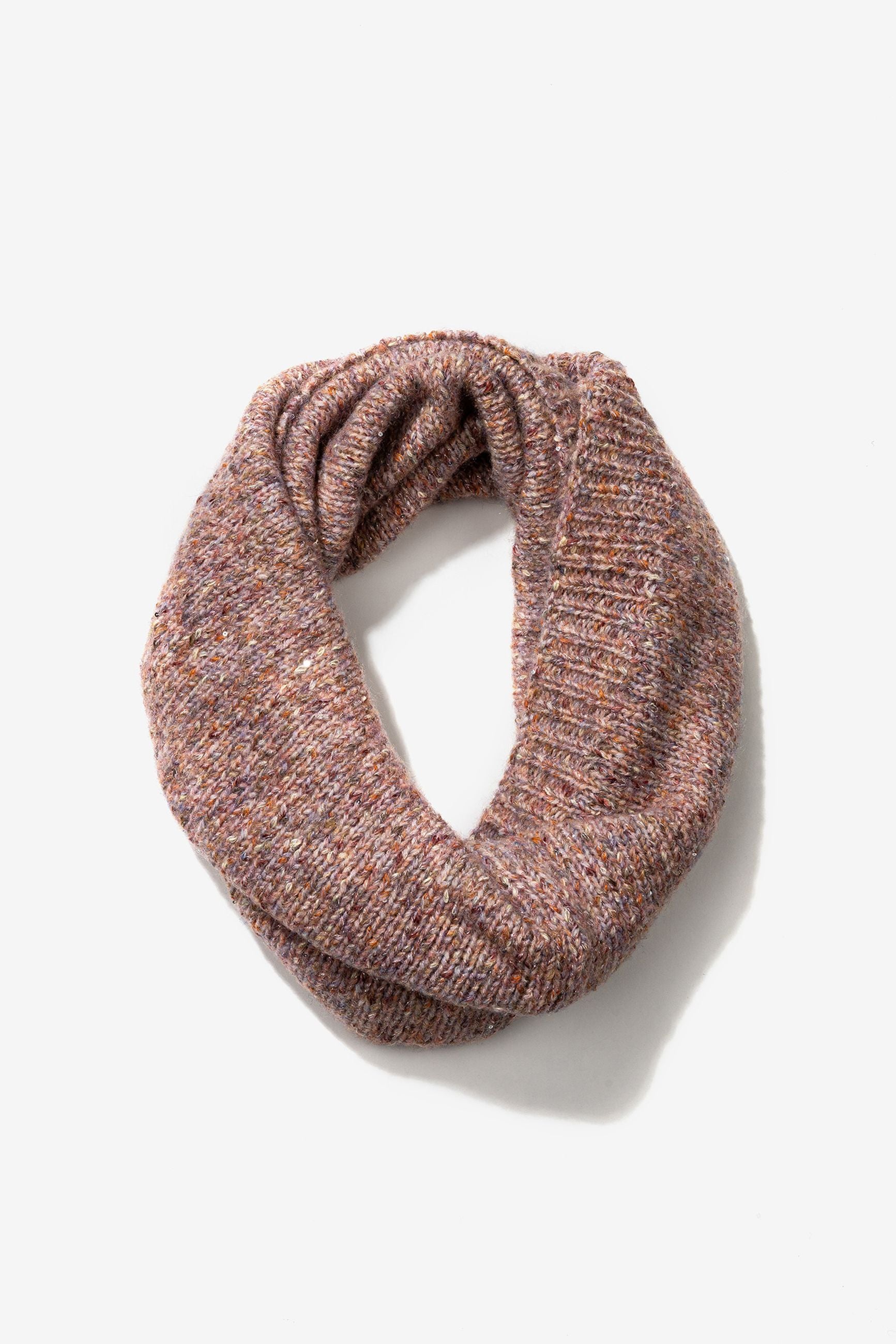 Set con sciarpa e berretto con paillettes, dettagli in filo metallico e pompon.