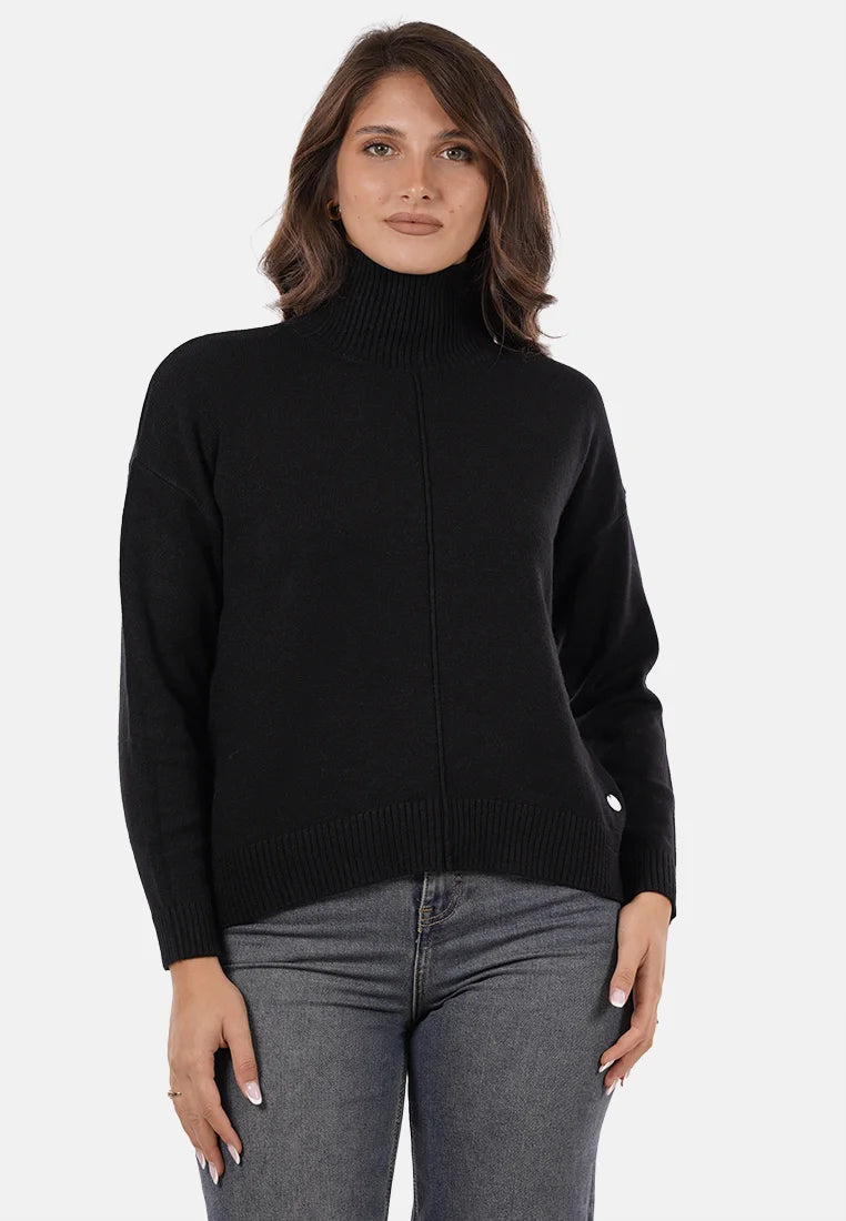 Questo maglione a collo alto in maglia di viscosa unisce una texture raffinata al comfort. Il motivo a coste ne esalta la vestibilità e la flessibilità, rendendolo un capo ideale da indossare a strati, sia per look casual che eleganti. Il tessuto traspirante in viscosa garantisce morbidezza e resistenza, fornendo una base sofisticata per il tuo guardaroba.