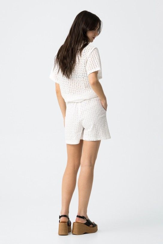 I bermuda in pizzo San Gallo offrono un mix perfetto di eleganza e comfort. Il raffinato pizzo dona un tocco femminile e sofisticato, mentre il taglio corto li rende ideali per le giornate più calde. Scegli un capo versatile che valorizza ogni outfit con stile e originalità.