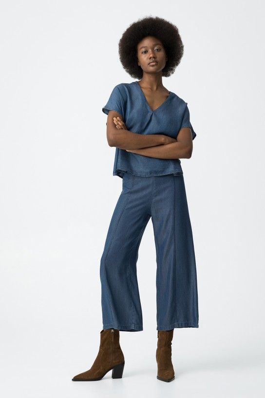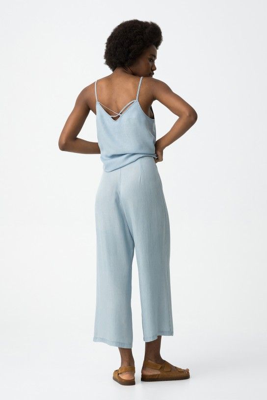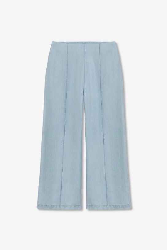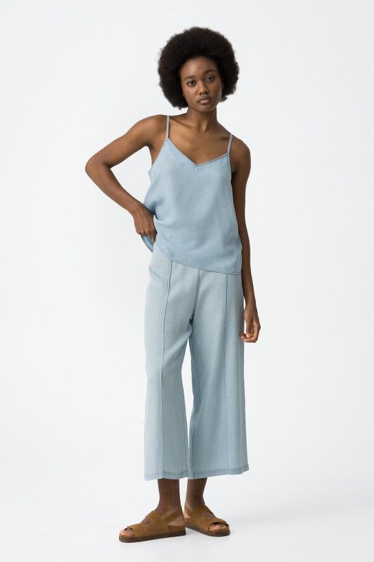 PANTALONE CHAMBRAY Il pantalone Gavin è la scelta perfetta per uno stile elegante e confortevole. Realizzato in morbido chambray e con una zip laterale per una vestibilità comoda, presenta anche una lunghezza cropped che aggiunge un tocco moderno al tuo look. Non rinunciare alla comodità senza sacrificare il tuo stile con il pantalone Gavin