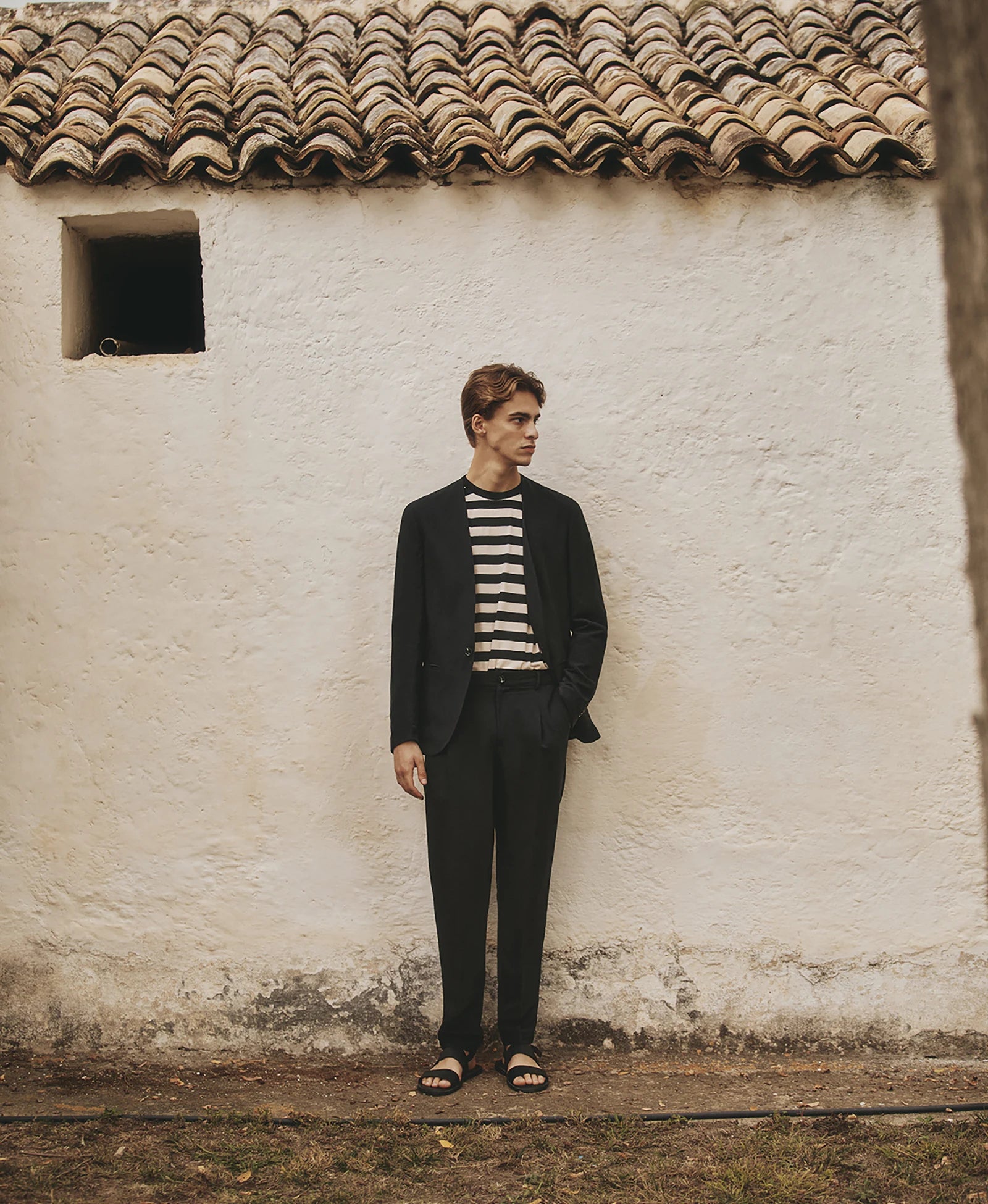 GIACCA SENZA COLLO UN BOTTONE VISCOSA E LINO