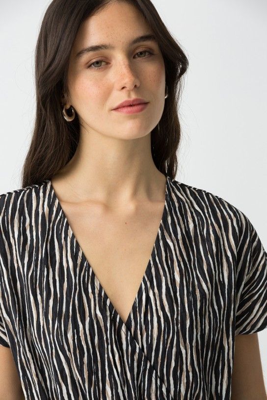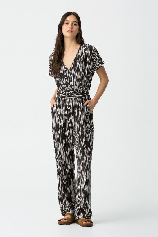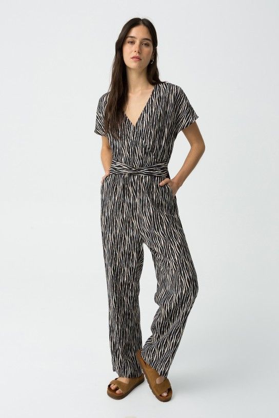 Unisciti alla tendenza della stampa zebrata con la nostra tuta con scollo a v! Confortevole e alla moda, ti farà risaltare in ogni occasione. Aggiungi un tocco di selvaggio al tuo guardaroba e fatti notare!