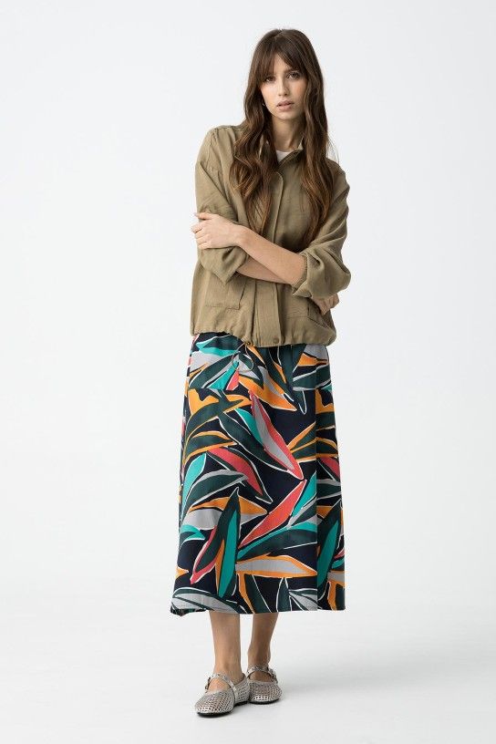 Esalta la tua femminilità con la gonna midi a vita alta Linda STAMPATA. La chiusura con zip laterale nascosta nella cucitura assicura un aspetto pulito e ordinato. La perfetta unione tra stile e funzionalità, per un look impeccabile
