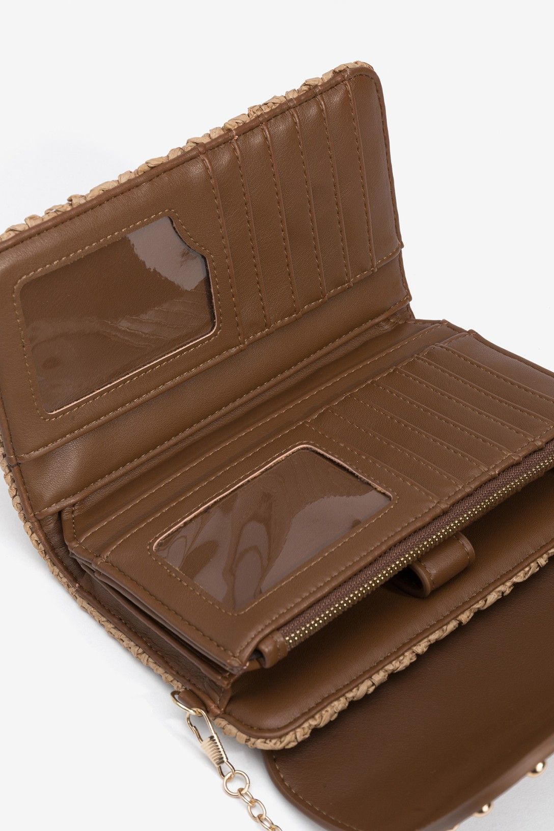 LIZZY è il portafoglio versatile che si trasforma in pochette elegante. Realizzato in raffia naturale, combina praticità e stile con scomparti organizzati per carte, monete e documenti. La catena removibile consente di indossarlo come clutch per occasioni speciali o utilizzarlo come portafoglio tradizionale. Perfetto per chi cerca un accessorio multifunzionale che non scende a compromessi tra funzionalità e design. Un pezzo essenziale della collezione TIFFOSI che si adatta a ogni momento della giornata.