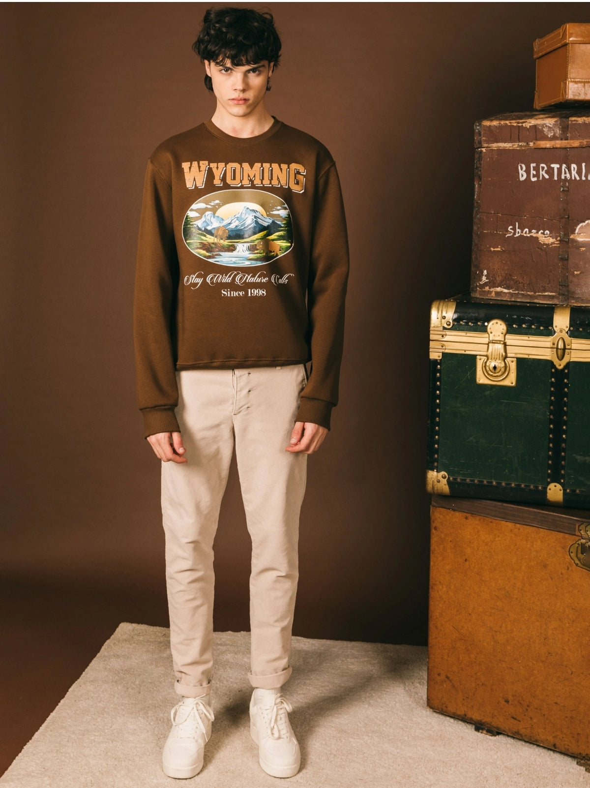 Felpa girocollo stampato Wyoming, vestibilità regular.