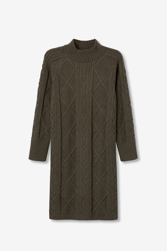 Questo abito in maglia a trecce slim fit valorizza la silhouette con eleganza. Il collo alto e le maniche lunghe garantiscono calore e comfort, mentre le finiture a coste aggiungono un dettaglio raffinato. Perfetto per chi desidera un look sofisticato e avvolgente, è ideale per le giornate più fresche senza rinunciare allo stile. Un capo versatile che unisce moda e praticità in modo irresistibile.