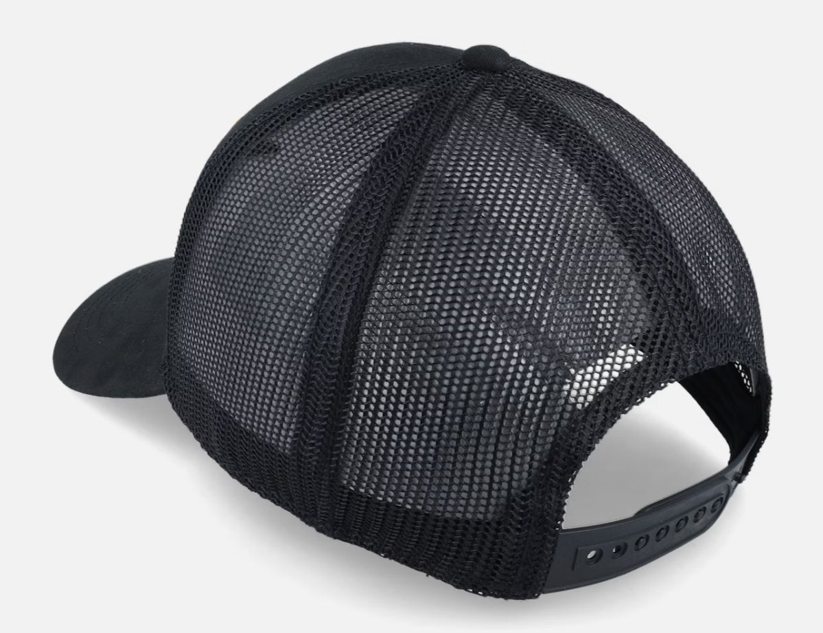 Corona in tela spazzolata con lati e pannelli posteriori in mesh. Corona strutturata a 5 pannelli con visiera curva e chiusura posteriore regolabile in plastica. Toppa ricamata con merlettato sul davanti.
