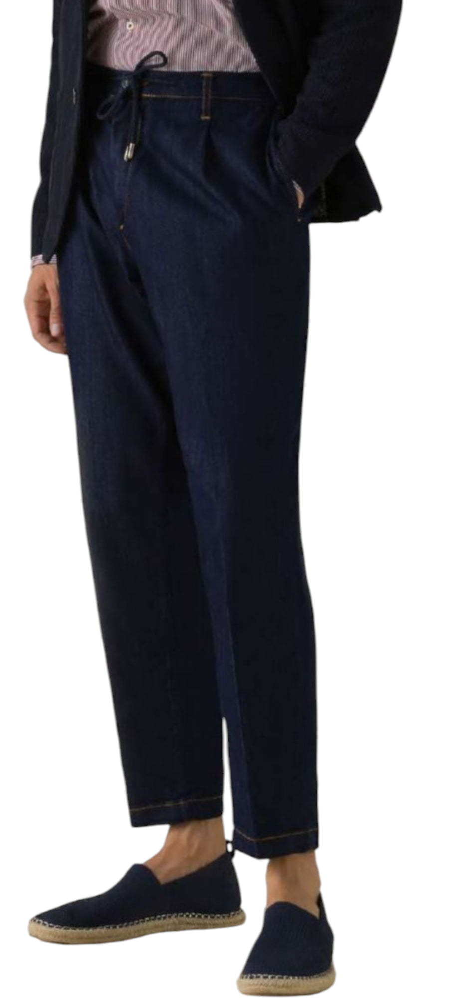 PANTALONE IN DENIM TASCA A FILO CON LACCIO IN VITA