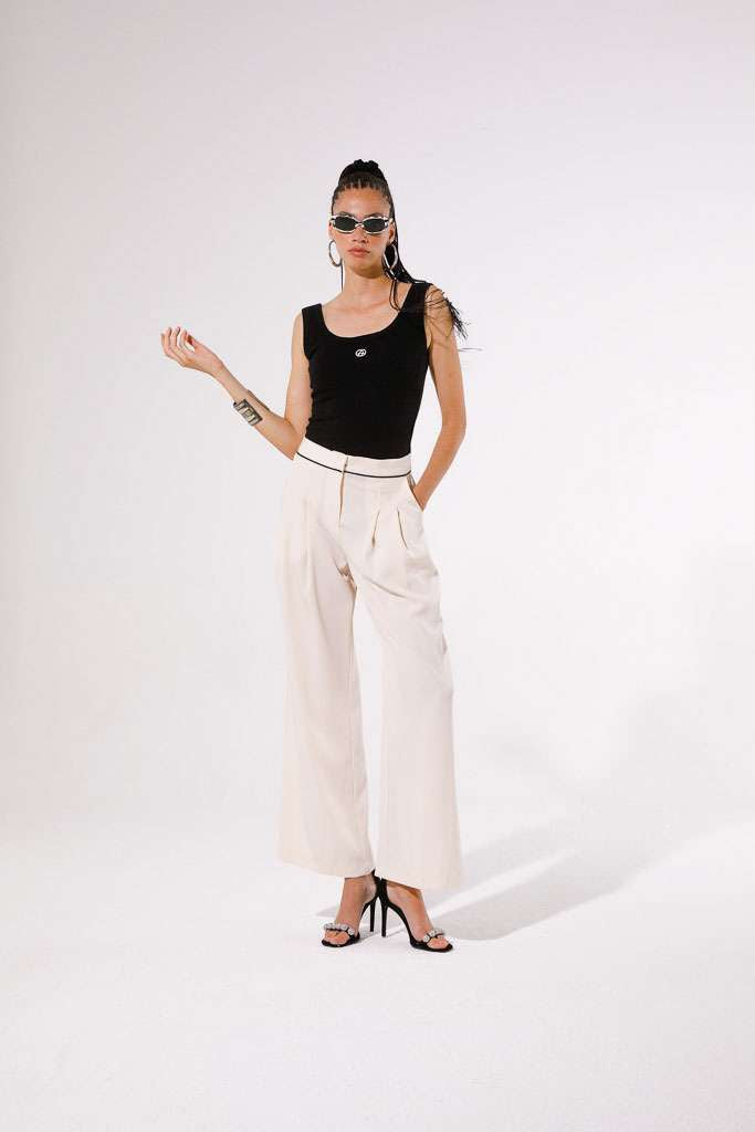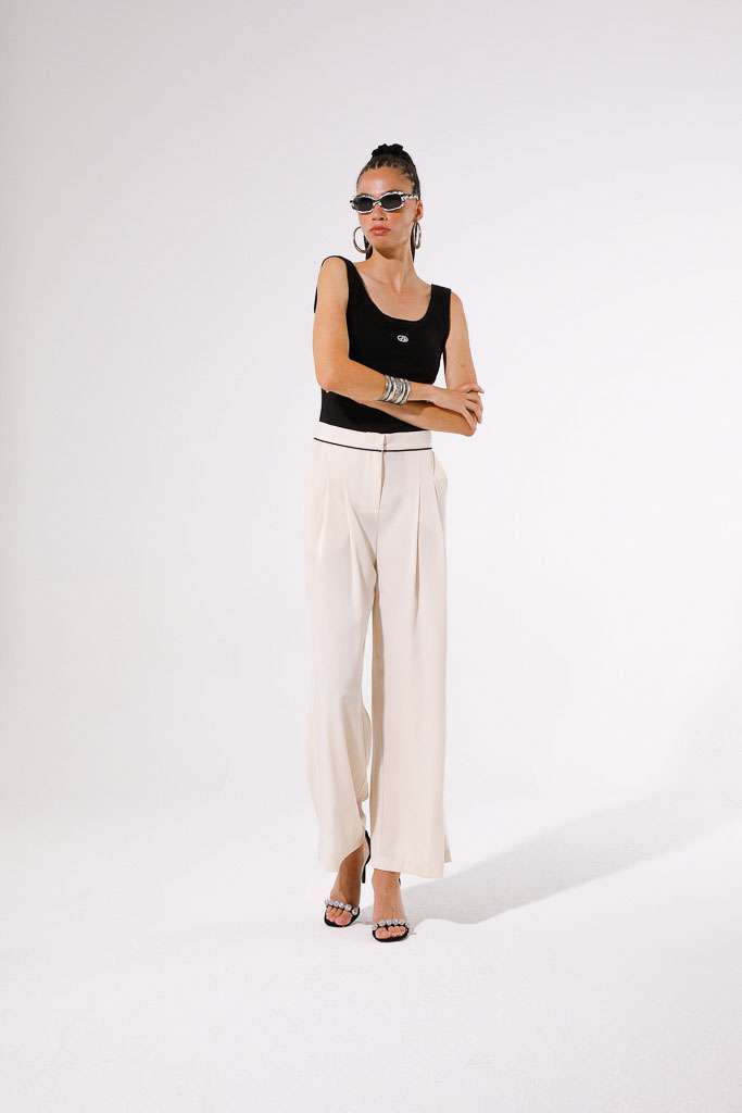 Realizzato con un design dritto e fluido, il Pantalone Pypes è perfetto per un look elegante e sofisticato. La vita strutturata con bordo a contrasto offre una calzata comoda e una silhouette slanciata. Inoltre, le tasche laterali funzionali aggiungono praticità e stile a questo elegante pantalone lungo liscio