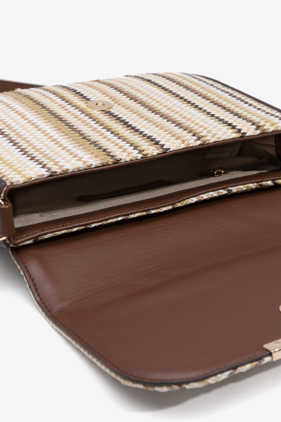 Borsa in rafia che cattura l'essenza dell'estate con una tracolla pratica e una patta che aggiunge carattere. Perfetta per chi ama i materiali naturali e i dettagli che parlano di consapevolezza, è l'accessorio che completa qualsiasi look con eleganza leggera. Un capo che trasforma le tue giornate con stile senza sforzo.