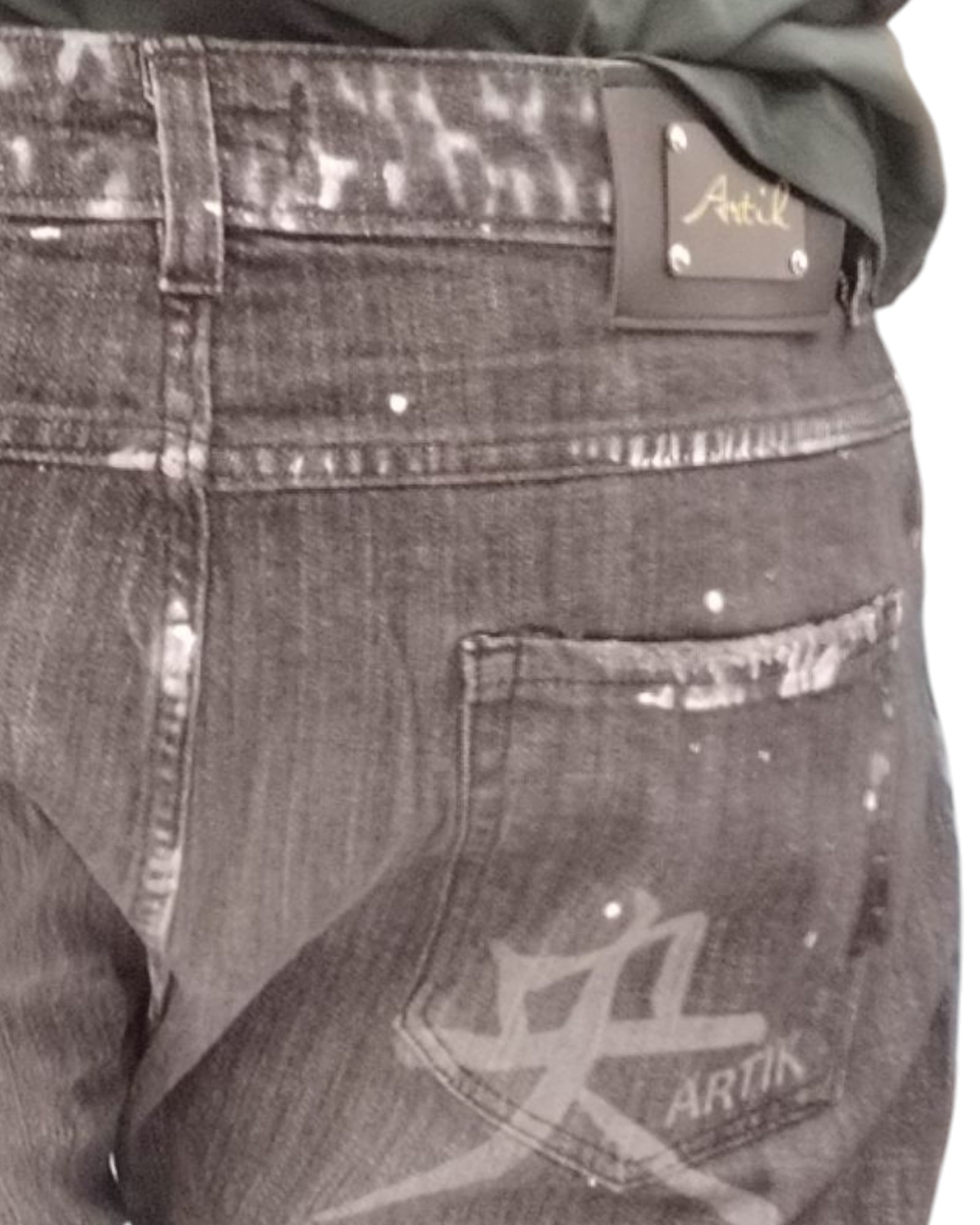 DENIM BLACK SU TELA GIAPPONESE CON STAMPA LASER RETRO LETTERA GIAPPO CON SARPA NERA