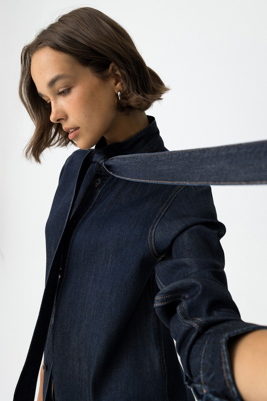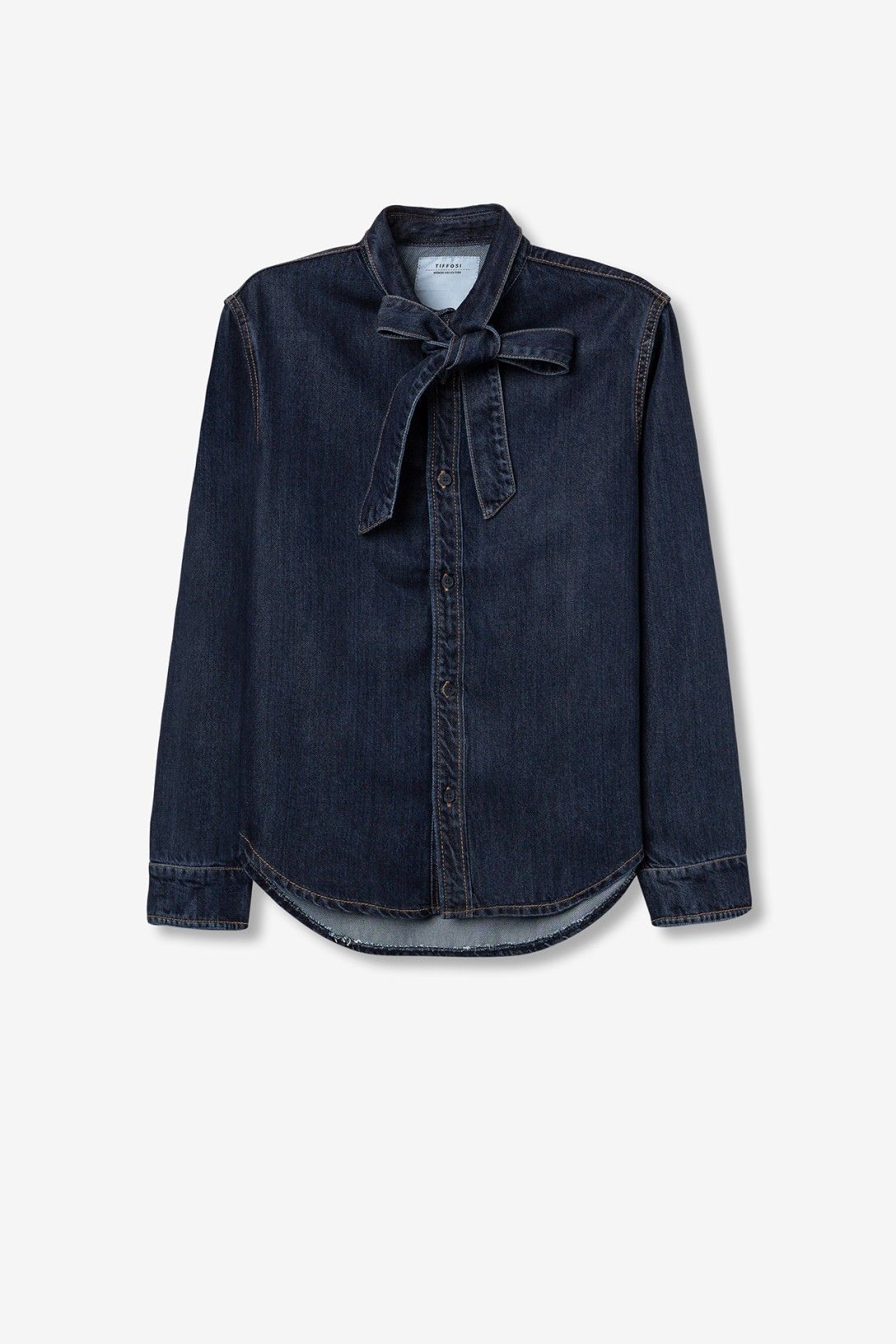 Questa camicia di denim con fiocco e chiusura con bottoni in lavaggio scuro unisce stile e praticità. Il tessuto resistente garantisce comfort e durata, mentre il dettaglio del fiocco aggiunge un tocco raffinato e distintivo. Perfetta per un look casual ma curato, si abbina facilmente a diversi outfit, rendendola un capo versatile nel guardaroba.