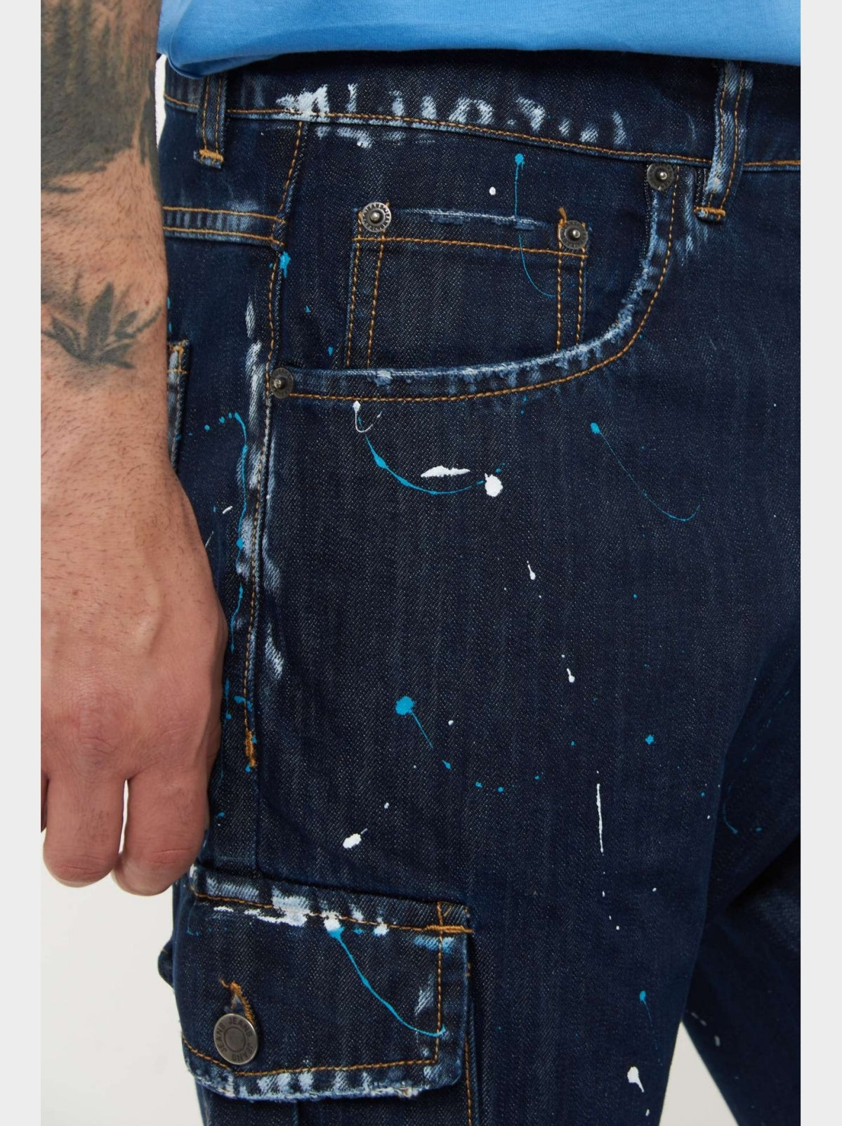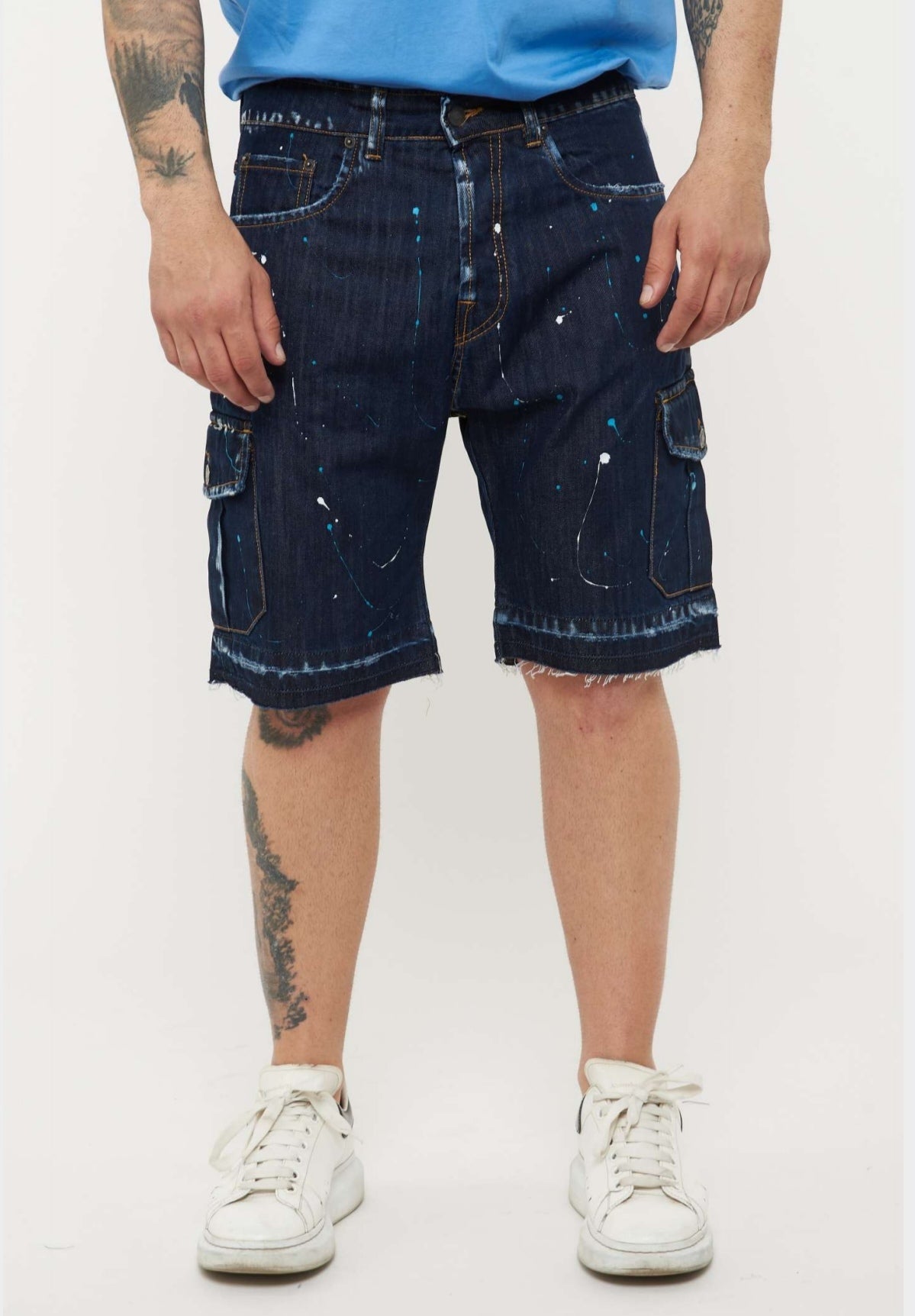 BERMUDA CARGO IN DENIM CON PIGMENTI BLUE E TAGLO VIVO AL FONDO
