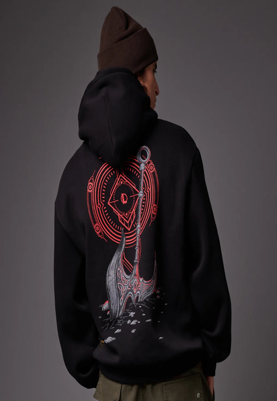 Con la sua possente ghigliottina noxiana, Darius fa a pezzi i nemici, incarnando una potenza cruda e inarrestabile. Stampa serigrafica fronte e retro