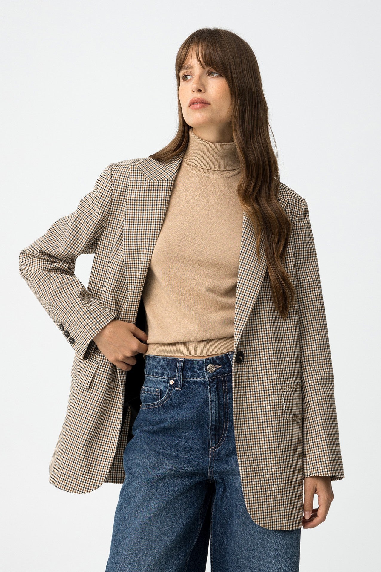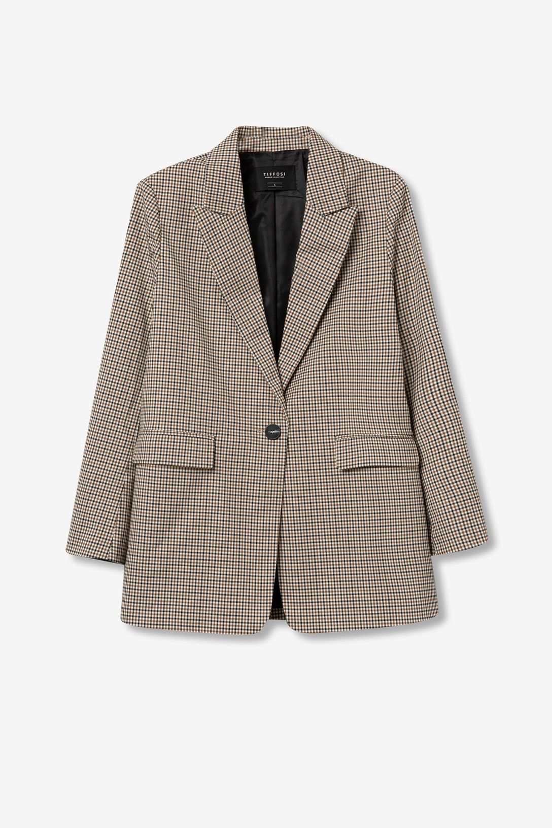 La giacca Tetrus presenta una vestibilità comoda, studiata per garantire comfort senza sacrificare lo stile. Dotata di due tasche anteriori con patta e chiusura a bottoni, unisce funzionalità ed eleganza. Il rever a lancia e le maniche lunghe completano un design sofisticato, rendendola una scelta ideale per un look professionale e contemporaneo.