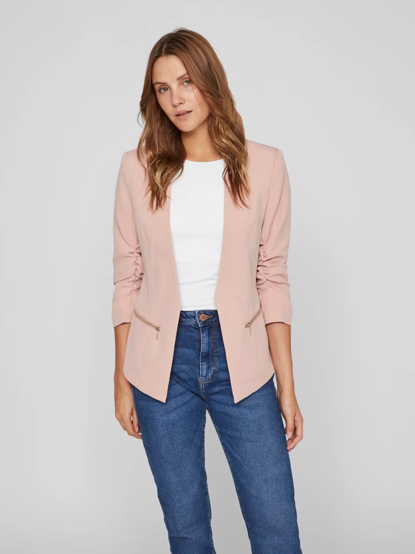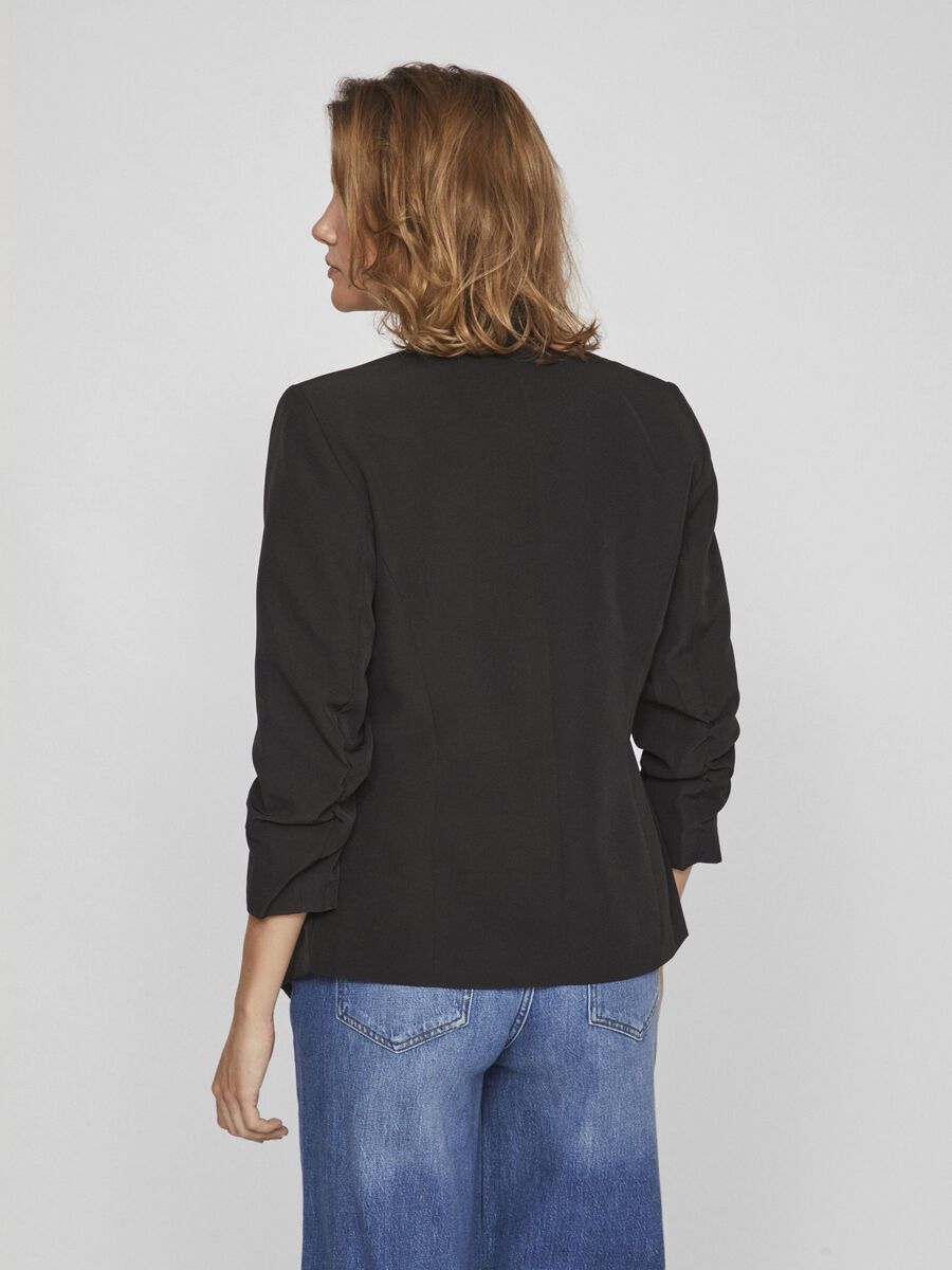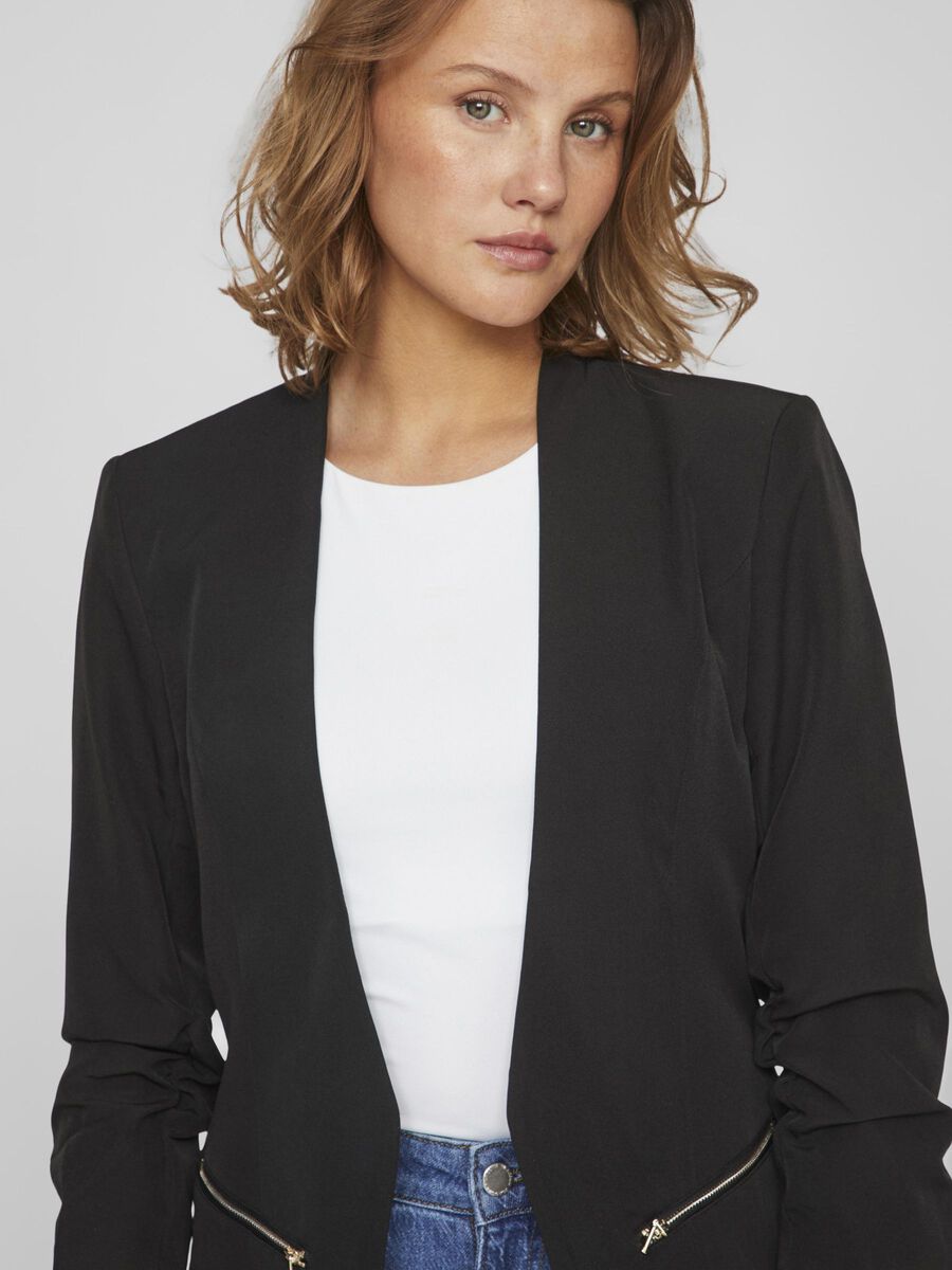 Il blazer con maniche a 3/4 è perfetto per un look elegante e sofisticato. Il suo materiale leggero lo rende ideale per ogni stagione, mentre le due tasche decorative con zip donano un tocco di modernità. Aperto sul davanti, è l'ideale per aggiungere un tocco di classe al tuo outfit.
