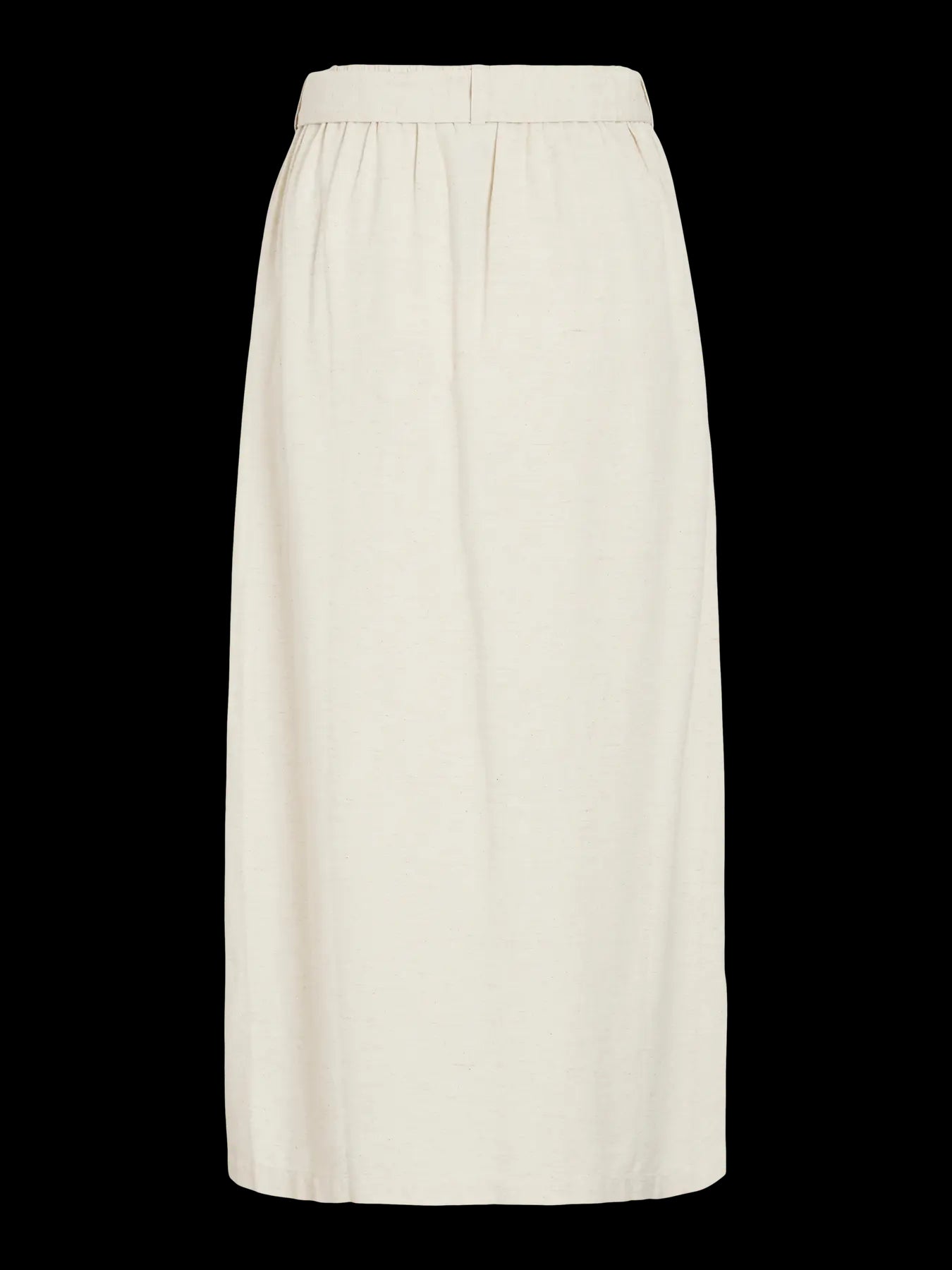Questa gonna midi tubino è dotata di uno spacco centrale sul davanti per un tocco di eleganza. Con chiusura a cerniera e bottone, presenta anche una comoda cintura rimovibile e tasche laterali. La vita elasticizzata solo sulla schiena garantisce una vestibilità perfetta. Realizzata in tessuto di lino, offre il massimo comfort e stile.
