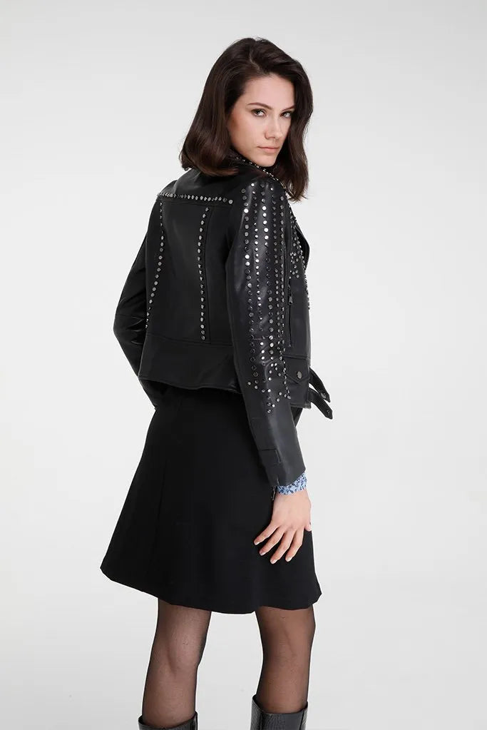 Questa giacca in similpelle YENDEGAIA unisce stile deciso e dettagli ricercati grazie alle borchie che arricchiscono il design. Perfetta per chi cerca un capo versatile e dallo spirito grintoso, offre comfort e resistenza tipici della pelle sintetica, ideale per completare look contemporanei con un tocco di personalità.